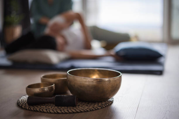 Eine außergewöhnliche Kombination begeistert einerseits aus passiven Dehnungen und Mobilisation, andererseits aus Klang- und Vibrationswellen von Klangschalen, Zimbel und Gong.